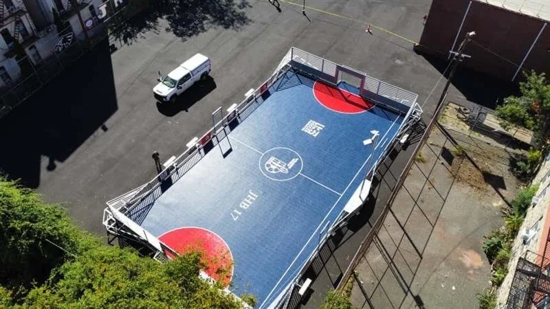 While the district is beginning work to envision a larger renovation at PS 17 - as part of their overall commitment to greening more schoolyards - New City Parks was instrumental in securing a commitment from USSF to install a mini-pitch in the schoolyard, including a new repaved surface, painted lines and integrated goals enclosed within rebound boards to keep the ball in play inside a sturdy perimeter fence. The US Soccer Foundation is also working with the school administration to program the pitch for the students. A Local Recreation Improvement Grant (LRIG) will provide funding for the installation of benches, planting beds and landscaping, including trees. The planting beds and tree wells have been designed to capture and infiltrate stormwater and provide shade for the color seal play spaces and enhance the area immediately adjacent to the new soccer mini pitch. PS 17 has four recess periods, and a robust after-school program that utilizes the schoolyard during summer school and on weekends. Additionally, the school hosts festivals three times a year for Brensinger families in the schoolyard.