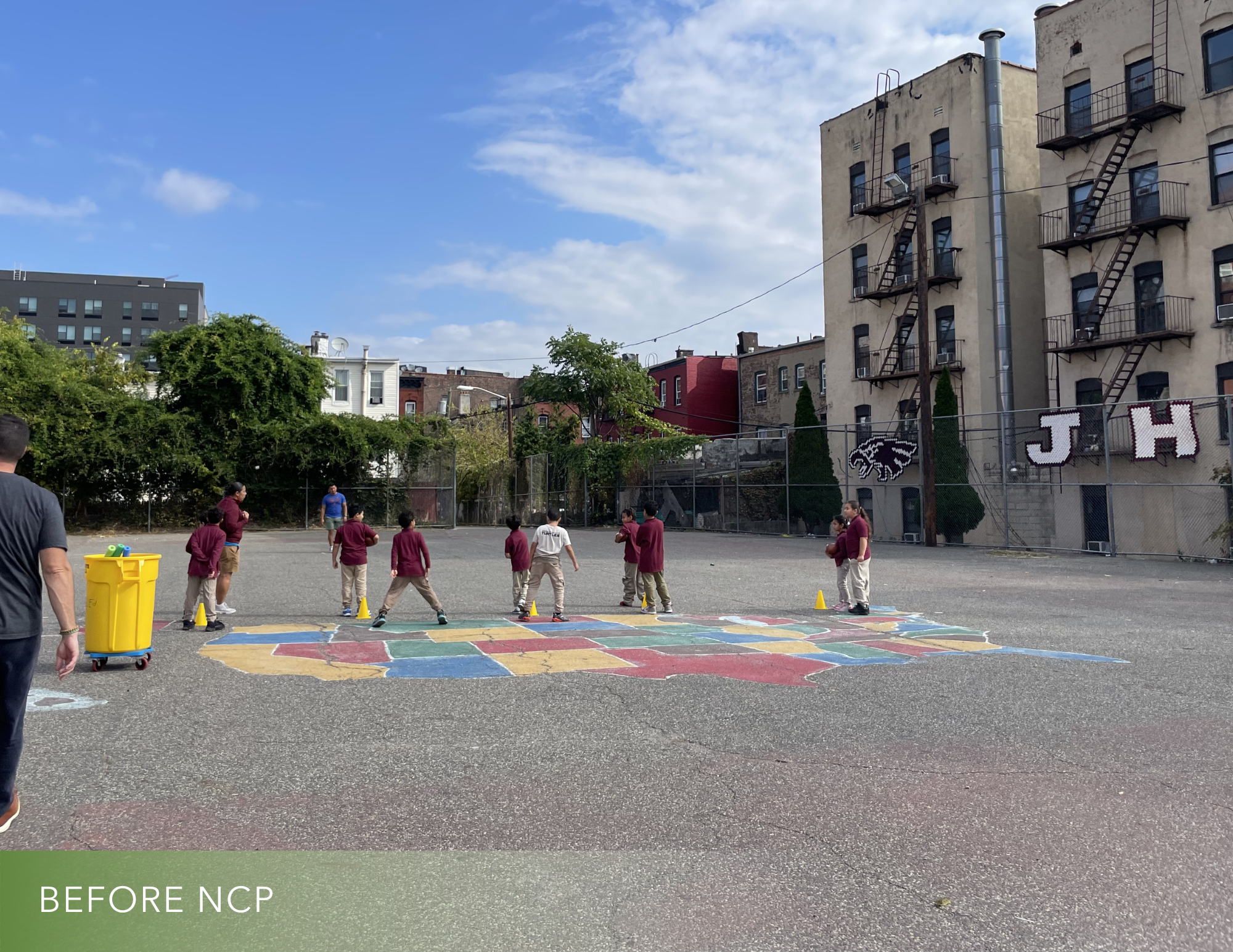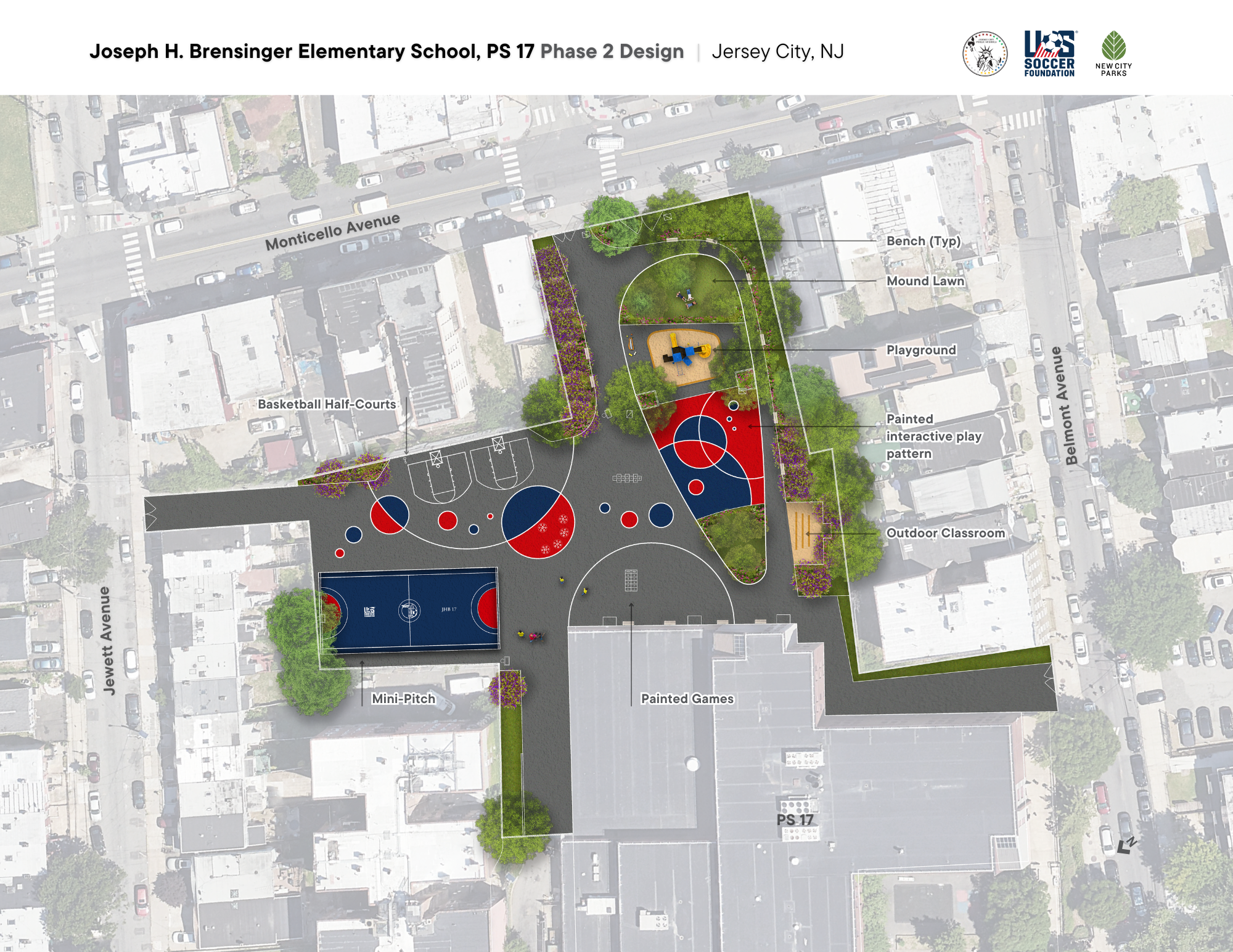The Joseph H. Brensinger Elementary School – PS 17 – has 987 students in K-8th grade. The existing schoolyard consists of barren crumbling asphalt with no greenery of any type. The condition of the space discourages any meaningful recreational use or organized programming. During summer school, the heat becomes unbearable.